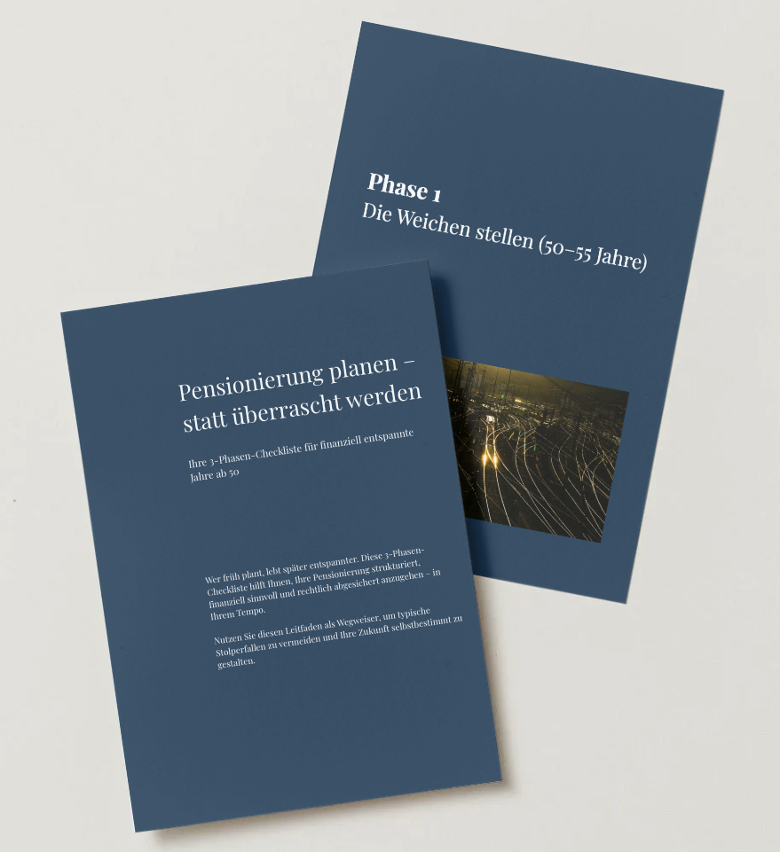 Wir begleiten Menschen 50+ bei Pensionierungs-, Vermögens- und Nachlassplanung.